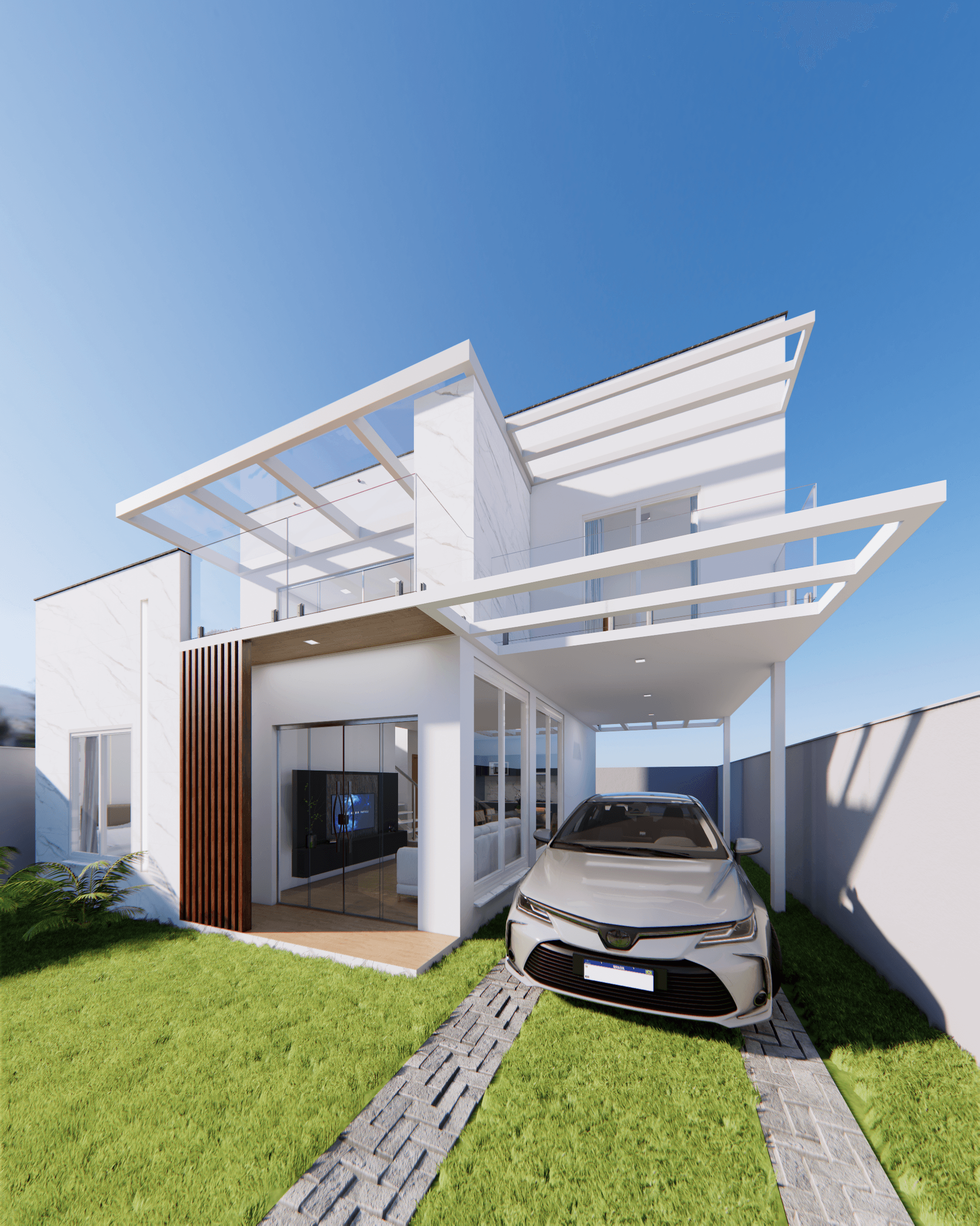 Um módulo duplex completo, projetado para quem busca praticidade, sofisticação e otimização de espaço. Com 3 quartos, sendo 2 suítes, closet exclusivo e varanda privativa, este projeto oferece o equilíbrio perfeito entre design contemporâneo e funcionalidade para moradias permanentes, sustentáveis e de alto padrão.