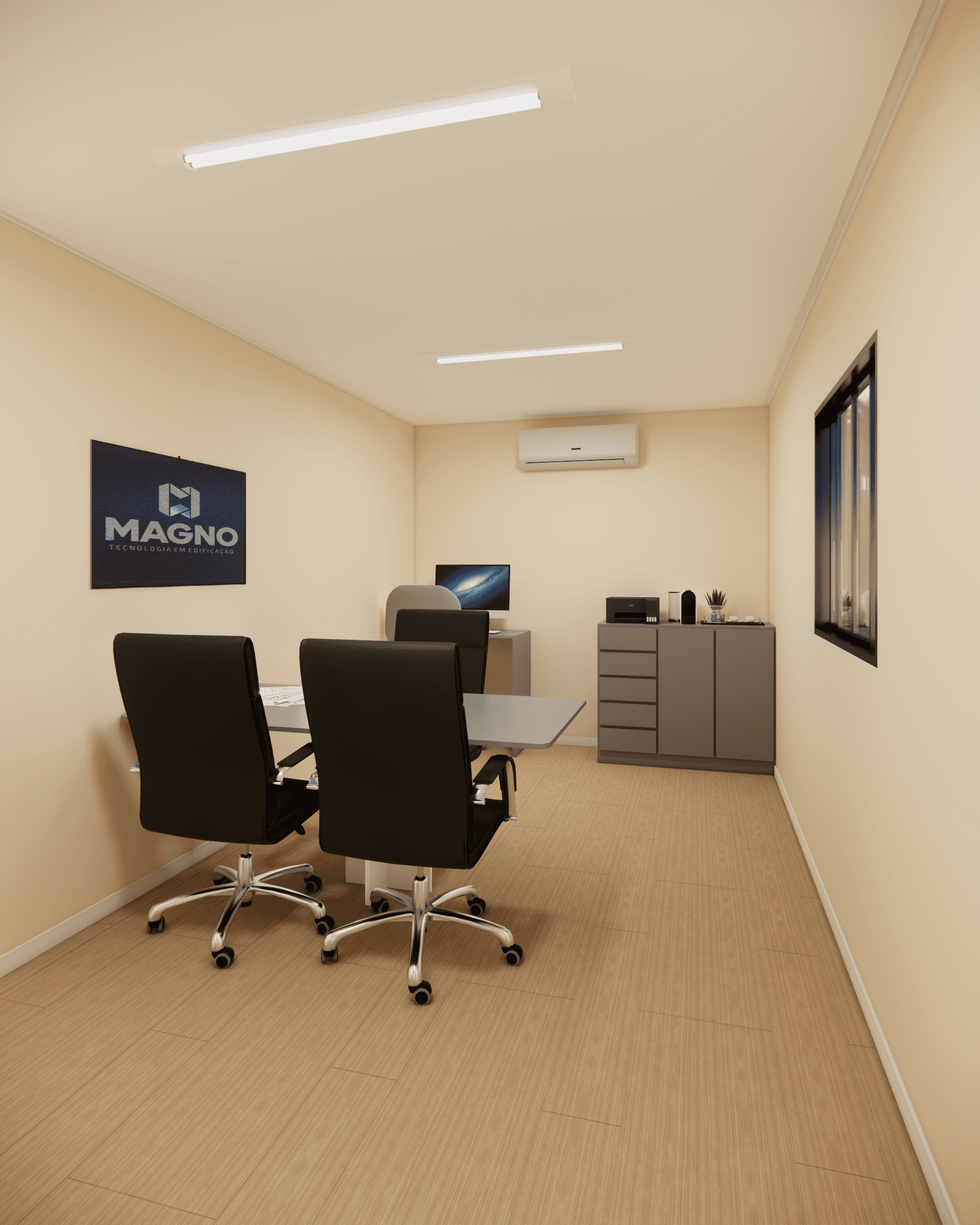 Apresentamos o Módulo de escritório 3x6m em Steel Frame: uma solução inteligente para quem precisa de um espaço funcional, moderno e 100% móvel. Ideal para, escritórios, lojas, salas de atendimento ou qualquer uso comercial.