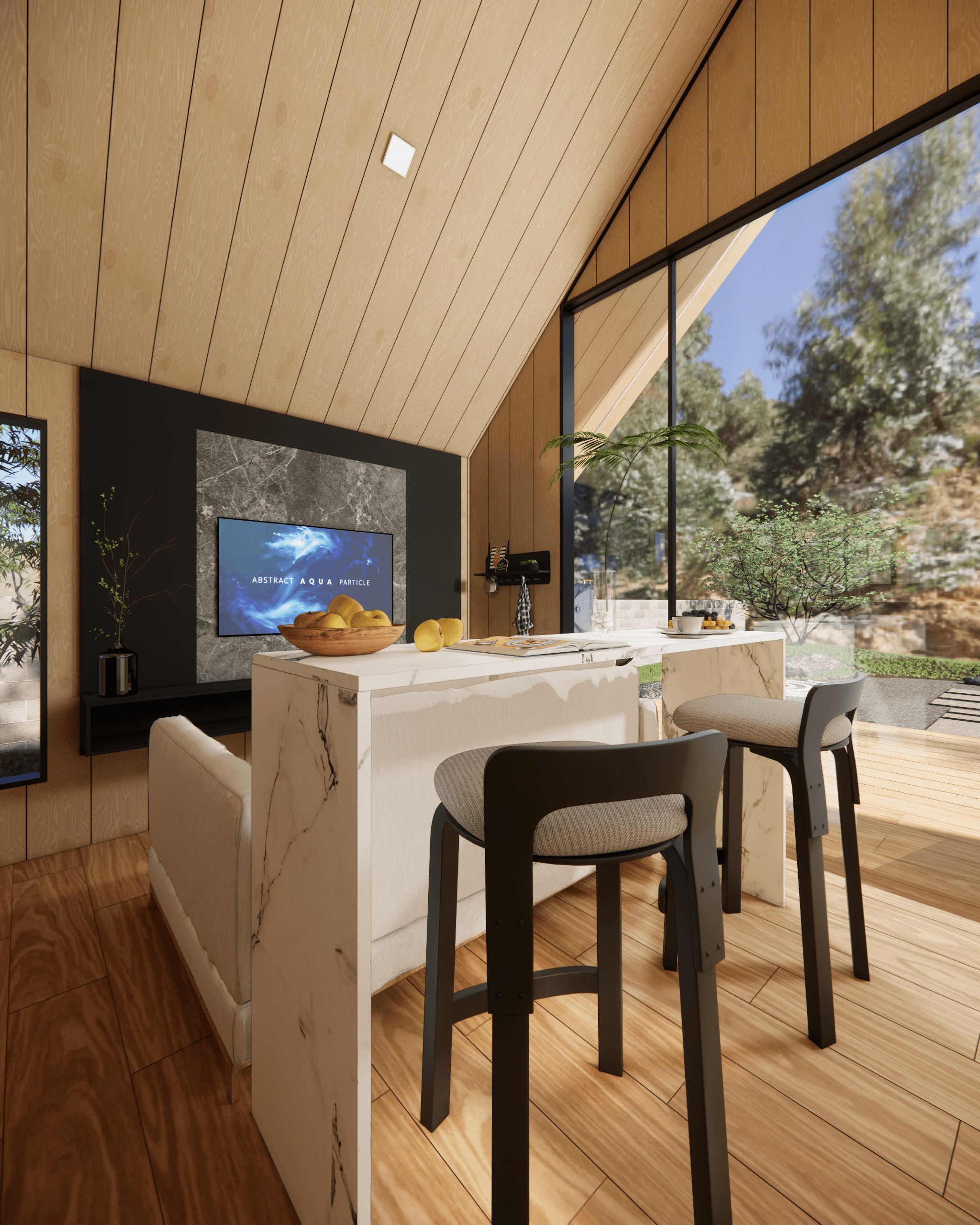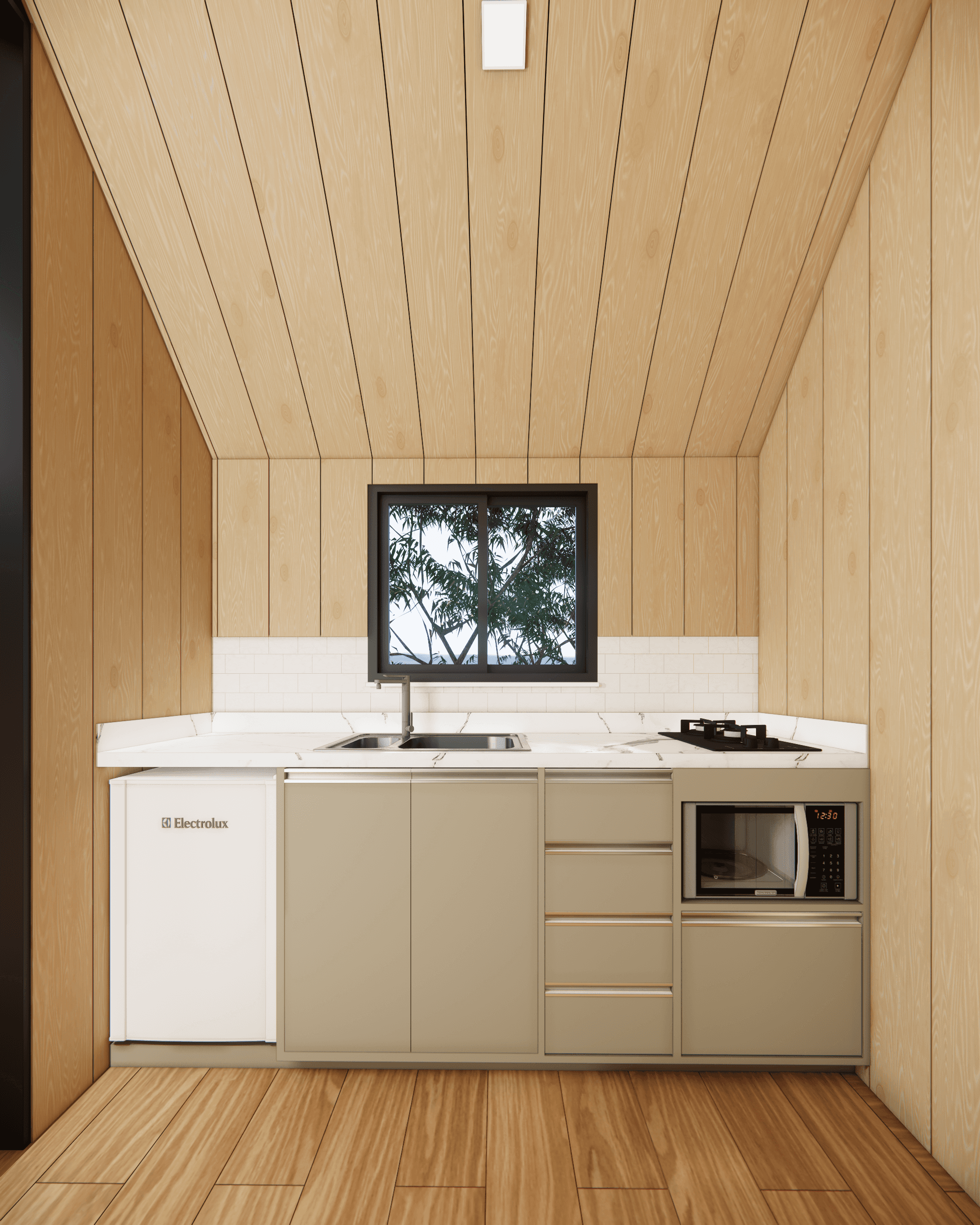 Este projeto apresenta um chalet estilo escandinavo compacto e versátil, projetado para oferecer conforto e funcionalidade em um espaço reduzido. Com dimensões de 4,5m x 6m, a cabana é ideal para uso como retiro de fim de semana, acomodação para hóspedes, escritório remoto ou até mesmo uma moradia minimalista. O design moderno integra elementos naturais, como madeira e vidro, promovendo uma conexão harmoniosa com o ambiente externo. O modelo padrão inclui um ofurô (banheira japonesa para relaxamento) e um deck externo, mas esses itens são opcionais, permitindo personalização conforme as necessidades do cliente.