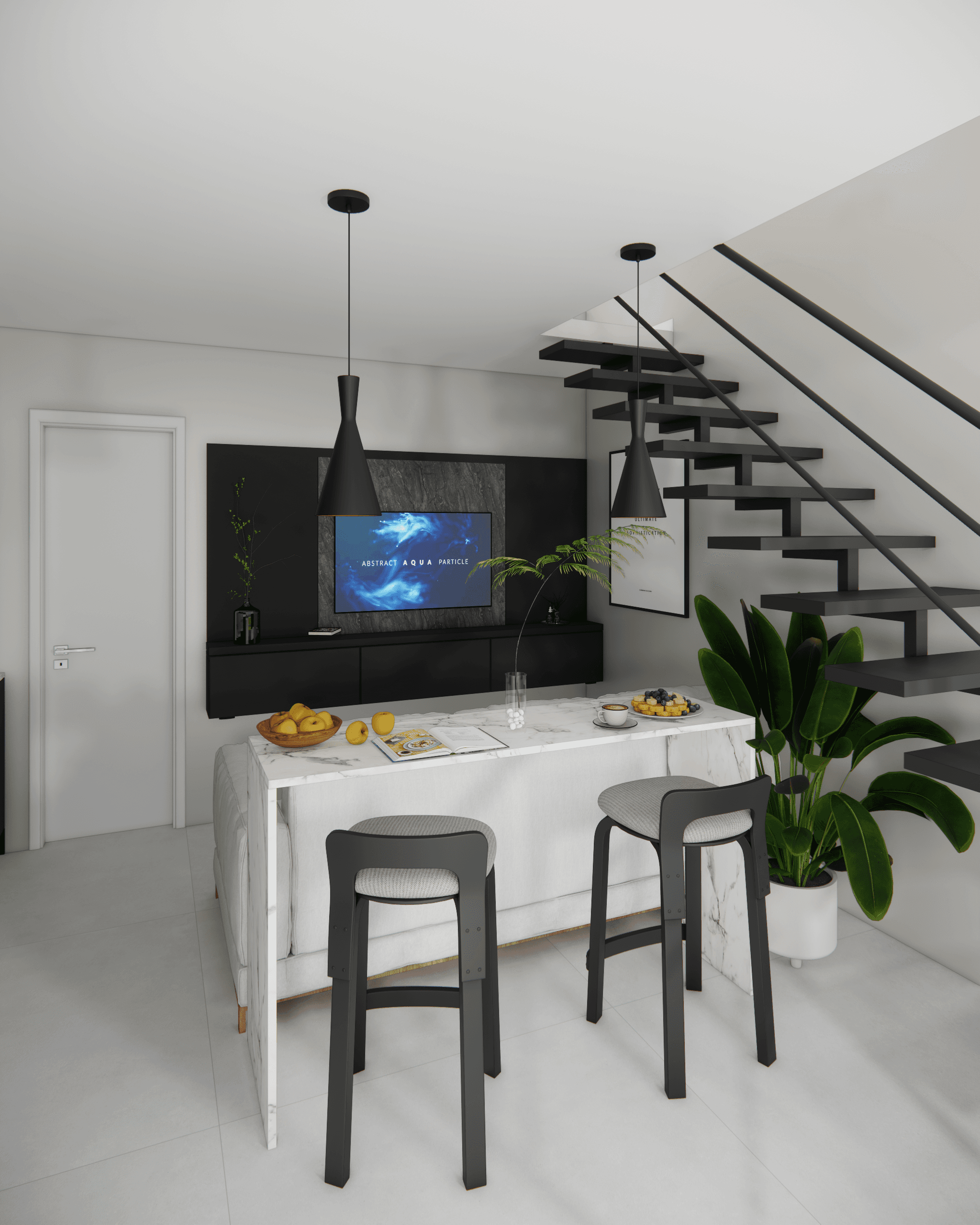 Térreo: Convivência Aberta e Fluida, Sala integrada à cozinha americana: Ambiente amplo e iluminado